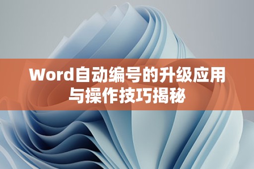 通过以上介绍,相信您已经对Word自动编号的升级和使用技巧有了更深入的了解,希望这些信息能帮助您在文档编辑过程中更加高效地使用自动编号功能。