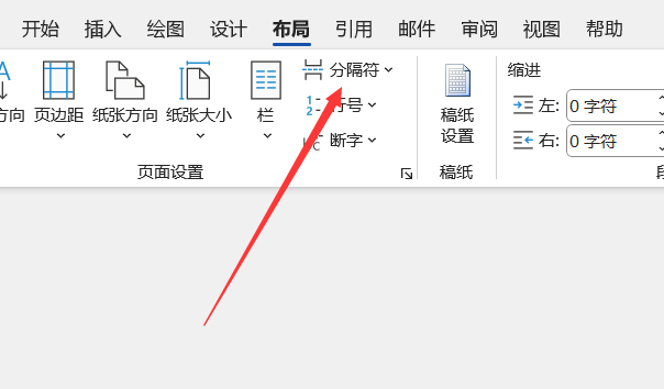在“页面布局”选项卡中,找到“页面设置”组,点击“分隔符”。
