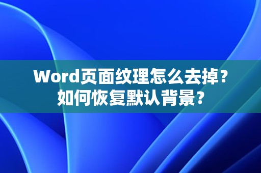 在Word文档编辑过程中,有时会遇到页面背景纹理的问题,这不仅影响了文档的美观,也可能对阅读造成困扰。那么,如何去掉Word页面纹理,恢复默认背景呢?以下将详细解答这个问题。