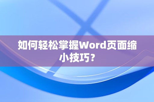 答:可以通过调整“页面设置”中的“纸张大小”和“页边距”来快速缩小Word页面。