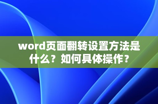 在Word文档编辑过程中,有时候我们需要对文档进行页面翻转设置,以便更好地展示文档内容。下面,我将详细介绍Word页面翻转设置的方法和具体操作步骤。