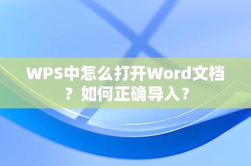 总结:本文详细介绍了在WPS中打开Word文档和正确导入的方法。通过以上步骤,您可以在WPS中轻松处理Word文档。希望对您有所帮助!