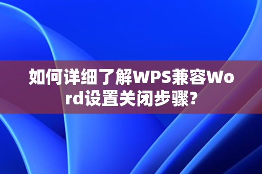 - 答案:关闭兼容Word设置后,WPS将无法直接编辑Word文档,您需要先将Word文档转换为WPS格式,或者使用其他兼容性软件打开和编辑。