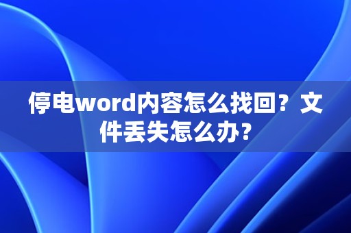 当电脑突然停电时,Word会自动保存一个名为“自动恢复文件”的临时文件。您可以通过以下方法找到并打开它: