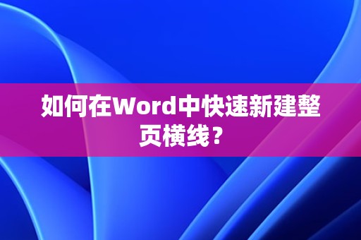 通过以上方法,您可以在Word中轻松新建整页横线,并对其进行各种设置和调整,希望本文对您有所帮助!