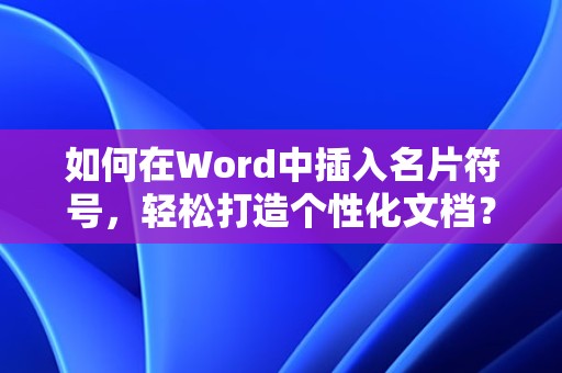 在Word文档中插入名片符号,可以帮助我们提升文档的专业性和美观度,通过本文的介绍,相信您已经掌握了在Word中插入名片符号的方法,在今后的工作中,不妨多尝试使用这一功能,让您的文档更具特色。