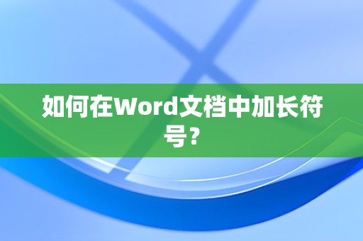 在Word文档中加长符号,可以通过多种方法实现,掌握这些方法,可以使我们的文档更加专业和美观,希望本文能对您有所帮助。
