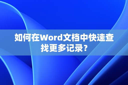 最佳答案1、打开Word文档,点击“开始”菜单。2、在“开始”菜单中,找到“编辑”分组,点击“查找”。3、在弹出的“查找和替换”对话框中,点击“查找”标签。4、在“查找内容”文本框中输入您要查找的关键词。5、点击“查找下一个”按钮,Word会自动定位到文档中第一个匹配的记录。6、若要继续查找下一个匹配项,可......