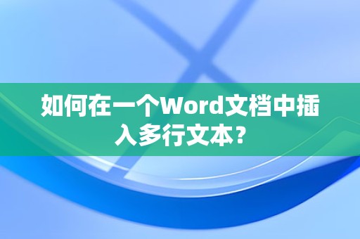在Word文档中插入多行文本有多种方法,您可以根据实际需求选择合适的方式,掌握这些方法后,您可以在文档中灵活地插入多行文本,使文档更加丰富和美观。