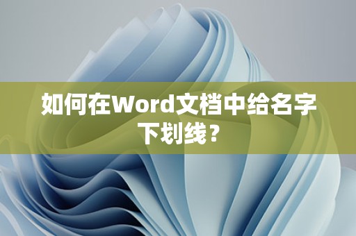 最佳答案1、打开Word文档,选中需要添加下划线的名字。2、点击“开始”选项卡中的“下划线”按钮,或者在“字体”组中选择下划线样式。3、Word会自动为选中的名字添加默认的下划线。1、选中需要添加下划线的名字。2、点击“开始”选项卡中的“下划线”按钮,然后选择“定义新下划线格式”。3、在弹出的“定义新下划线......