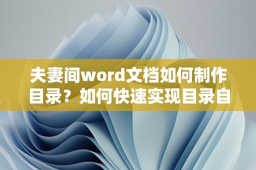 通过以上方法,夫妻间可以轻松制作并自动生成Word文档的目录,提高文档的可读性和实用性。希望这篇文章对您有所帮助。