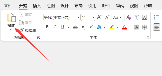 点击“开始”菜单栏中的“粘贴”按钮,选择“无格式粘贴”。