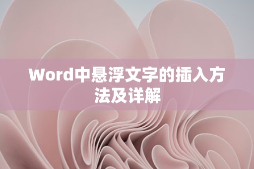 通过以上步骤和技巧,你可以在Word文档中轻松地插入和调整悬浮文字,为你的文档增添专业和吸引人的视觉效果。