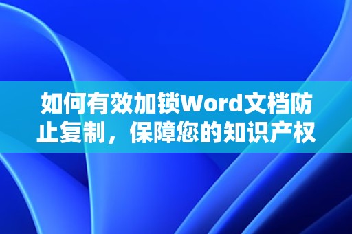 通过以上方法,我们可以有效地在Word文档中加锁防止复制,保护自己的知识产权,在日常生活中,我们要提高版权意识,尊重他人的劳动成果,同时也要学会保护自己的合法权益,希望本文对您有所帮助。