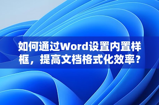 Word内置样框是一种预定义的格式,可以快速应用于文档中的文本、表格、图片等元素,内置样框包括文本框、表格、页眉页脚、标题样式等,通过使用这些样框,可以节省大量的时间和精力,提高文档的排版效率。