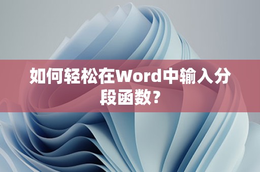 答: 在Word中输入分段函数时,可以使用等号“=”表示分段点,表示分段函数在x=0处分段,可以输入“f(x) = egin{cases} g(x) & ext{当 } x < 0 \ h(x) & ext{当 } x geq 0 end{cases}”。