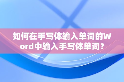 最佳答案Word 2013及以上版本中,内置了手写体功能,可以直接在文档中输入手写体单词,以下是具体操作步骤:1、打开Word文档,点击“插入”选项卡。2、在“符号”组中,选择“手写体”按钮。3、在弹出的手写面板中,使用鼠标或触摸板开始书写单词。4、书写完成后,释放鼠标或触摸板,Word会自动识别并转换成文......
