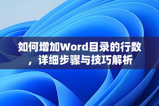 通过以上方法,我们可以轻松地在Word中增加目录的行数,在实际操作中,可以根据自己的需求选择合适的方法,使目录更加符合文档的结构和风格。