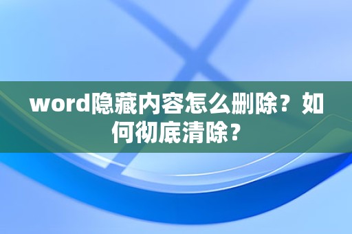 回答:删除Word中的隐藏内容后,文档的格式和内容不会发生变化,只是隐藏的内容不再显示。