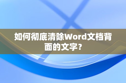 清除Word文档背面的文字,可以通过多种方法实现,在实际操作中,可以根据具体情况选择合适的方法,希望本文提供的详细步骤和解决方案能够帮助您解决Word文档背面文字清除的问题。