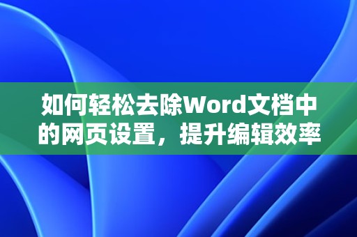 去除Word网页设置是调整文档格式的重要步骤,可以帮助您更好地控制文档排版,提升编辑效率,通过本文介绍的方法,您可以在Word中轻松去除网页设置,为您的文档排版提供更多可能性。