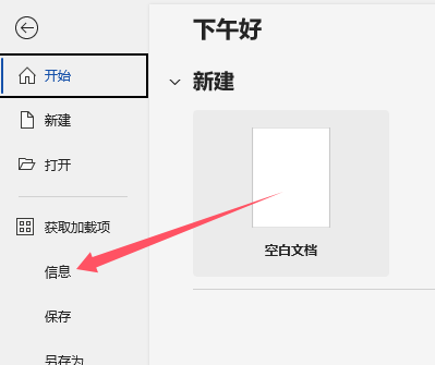 打开Word文档,点击“文件”菜单,选择“信息”选项卡。