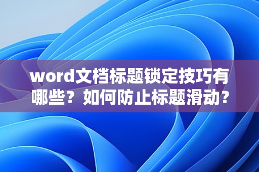 最佳答案一、使用标题样式锁定标题1. 在Word文档中,首先选择需要设置为标题的文本。2. 点击“开始”选项卡,在“样式”组中选择合适的标题样式(如“标题1”、“标题2”等)。3. 在弹出的“样式”对话框中,勾选“自动更新标题”复选框。4. 保存文档。通过以上步骤,所选文本将被设置为标题,并自动更新标题样式......