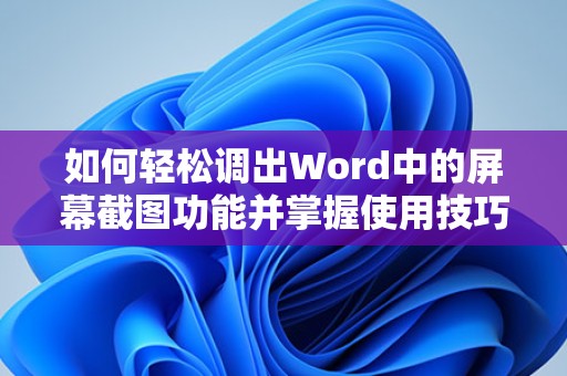 通过以上步骤,你可以在Word中轻松地调出屏幕截图,并根据需要对其进行编辑和调整,这些功能可以帮助你更高效地完成工作,提高文档的专业性。