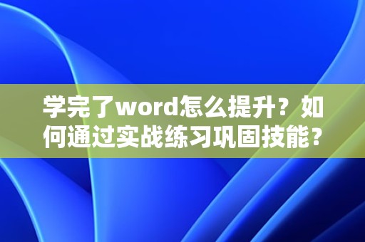 学完了Word后,要通过拓展高级功能、实战练习、利用网络资源以及定期总结与反思等方式,不断提升自己的Word技能。相信在不断的努力下,你将成为Word高手!