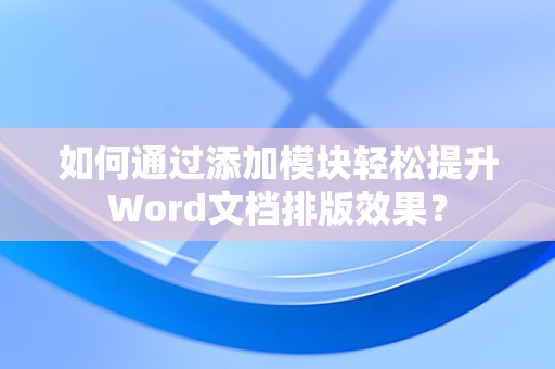 通过以上方法,相信大家已经掌握了Word文档添加模块的技巧,在今后的工作中,合理运用模块,将使您的文档更加美观、实用,祝您工作顺利!