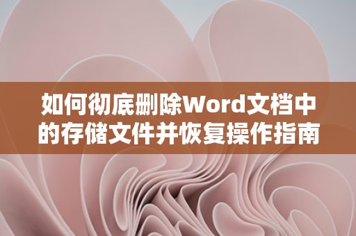 通过以上方法,您可以在Word中有效地删除储存文件,同时了解如何进行文件恢复,确保您的文档管理更加高效。