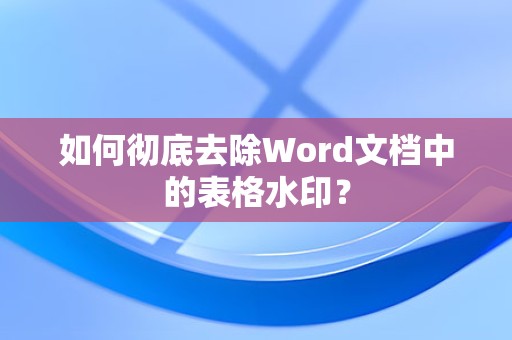 通过以上方法,您可以在Word文档中轻松去除表格水印,让您的文档更加美观,希望本文对您有所帮助!
