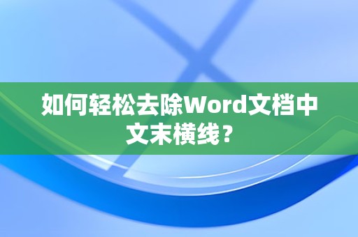 最佳答案1、段落格式设置:在Word文档中,如果段落格式设置为“段后间距”为“固定值”,则会在段落结束后添加一条横线。2、样式应用:当应用某些样式时,可能会自动在段落结束后添加横线。3、自动更正功能:Word的自动更正功能有时也会导致文末横线的出现。1、调整段落格式(1)选中要去除横线的段落。(2)点击“开......