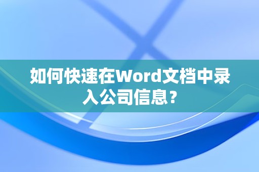 通过以上方法,您可以在Word文档中高效录入公司信息,提高工作效率,确保信息准确性,希望本文对您有所帮助。