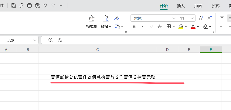 操作完成后文档内将输入转换的人民币大写内容。