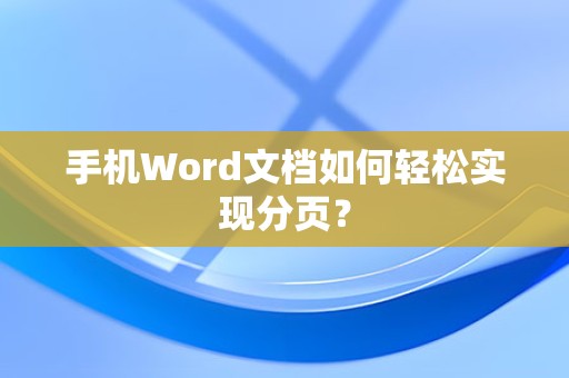 最佳答案1、使用手机自带的Word应用大多数智能手机都内置了Word应用,如Android系统的Google文档和iOS系统的iWork等,以下以Google文档为例,介绍如何在手机上进行分页。(1)打开Google文档,新建或打开一个Word文档。(2)点击屏幕右下角的“+”号,选择“插入”。(3)在弹出......