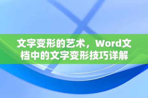 本文介绍了Word文档文字变形的几种方法,包括使用艺术字、文本框、文字效果和条件格式,通过这些方法,我们可以轻松实现各种文字变形效果,使文档更加美观,希望本文对大家有所帮助。