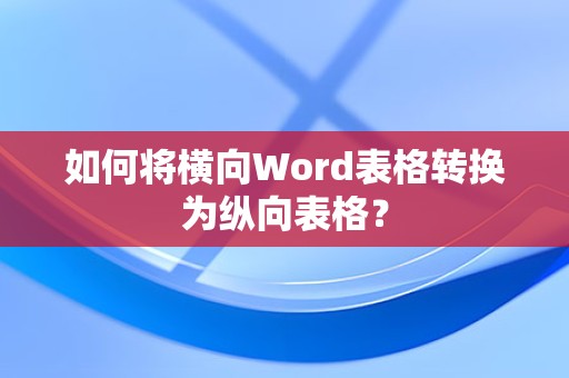 通过以上步骤,您可以在Word中将横向表格成功转换为纵向表格,希望本文对您有所帮助!