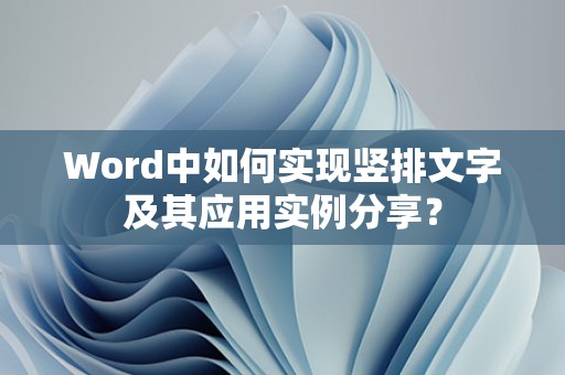 Word竖排文字的应用为文档排版提供了更多可能性,通过掌握相关技巧和实例,我们可以更好地运用竖排文字,使文档更具特色,在实际操作中,不断尝试和探索,相信你会在竖排文字的运用上取得更好的效果。