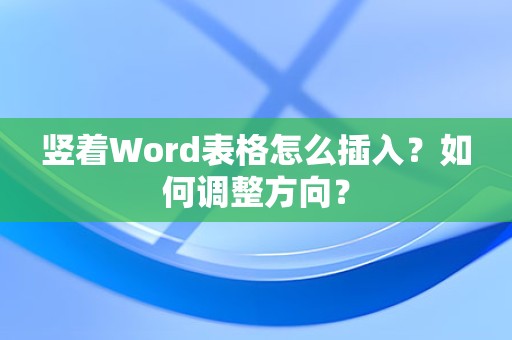 通过以上步骤,你可以在Word中轻松地插入和调整竖着表格的方向,使你的文档排版更加美观和实用。
