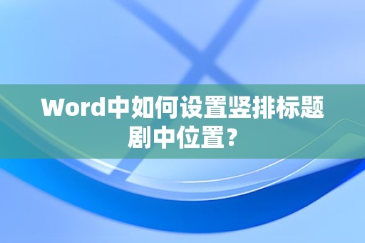 通过以上步骤和注意事项,相信您已经掌握了如何在Word中实现竖排标题的剧中设置,这种排版方式不仅美观,而且实用,能够提升文档的专业性和可读性。