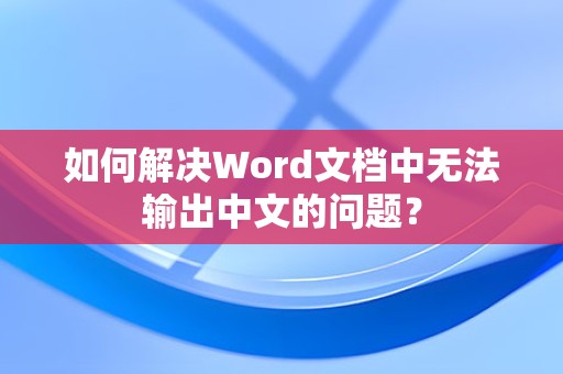 Word文档中无法输出中文的原因多种多样,但通过以上方法,您应该能够解决这一问题,在处理文档时,注意字体选择、系统语言设置、文档编码格式等因素,以确保文档能够正常显示中文,希望本文对您有所帮助。