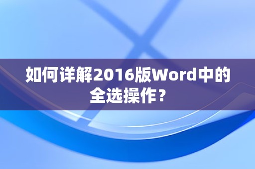 在2016版Word中,全选操作是一个简单而又实用的功能,通过以上方法,用户可以轻松实现文档的全选,掌握全选操作,有助于提高办公效率,让工作更加得心应手。