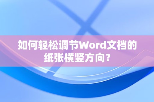 通过本文的介绍,相信您已经掌握了在Word中调节纸张横竖方向的方法,在实际操作中,根据您的需求选择合适的纸张方向,可以使您的文档更加美观、易读,希望本文能对您的文档编辑工作有所帮助。