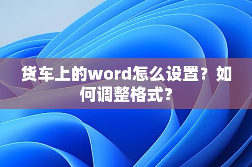 随着科技的发展,电脑已经成为了货车司机们工作中不可或缺的工具之一。在货车行驶过程中,使用Word文档进行记录、编辑和整理信息是非常方便的。那么,货车上的Word如何设置?如何调整格式呢?以下是一些详细的步骤和建议。