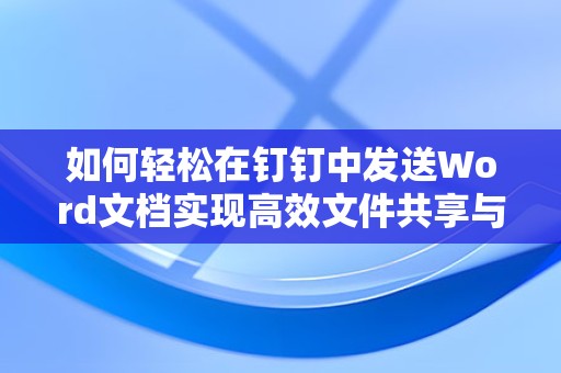 通过本文的介绍,相信您已经掌握了如何使用钉钉发送Word文档的方法,钉钉作为一款强大的办公工具,能够帮助我们提高工作效率,实现文件共享与协作,希望本文对您有所帮助!