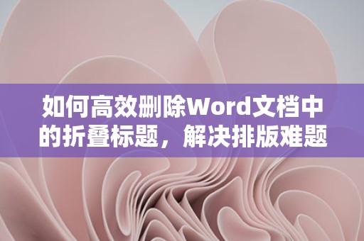 本文详细介绍了Word折叠标题的删除方法,包括通过快捷键、设置、代码和宏录制等多种方式,希望这些方法能帮助您解决Word文档排版难题,提高工作效率。