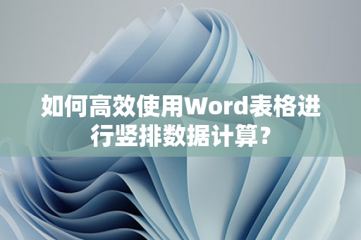 通过以上方法,我们可以在Word表格中轻松计算竖排数据,在实际应用中,我们可以根据需要选择合适的公式进行计算,希望本文能对您有所帮助。