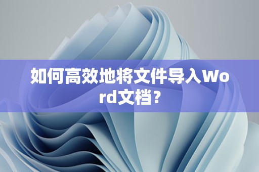 将文件导入Word文档是一项基本而实用的技能,通过以上步骤,您可以轻松地将各种类型的文件导入Word文档,并对其进行编辑和整理,熟练掌握这些技巧,将大大提高您的办公效率。