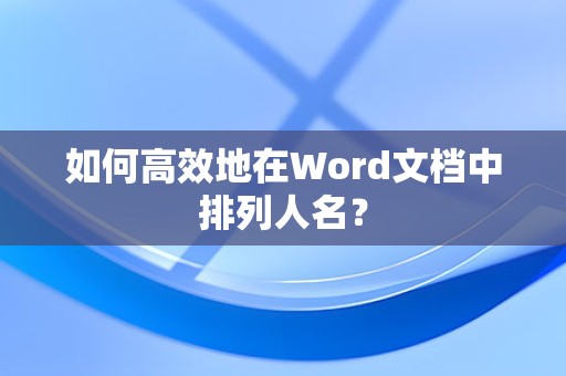 通过以上介绍,相信您已经掌握了在Word文档中排列人名的技巧和步骤,在实际操作中,可以根据具体需求灵活运用这些方法,使文档更加专业、美观,希望本文对您有所帮助。
